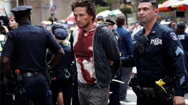 جمعی از این معترضان خود را شبیه قربانیان آغشته به خون درآورند و روی سنگفرش خیابان دراز کشیدند.